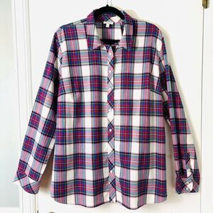 Talbots cotton plaid red, blue, green, white button up shirt XL