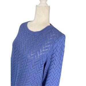 Great condition Talbots open knit herringbone sweater with 3/4 sleeves. Cotton/linen. Deep periwinkle color.