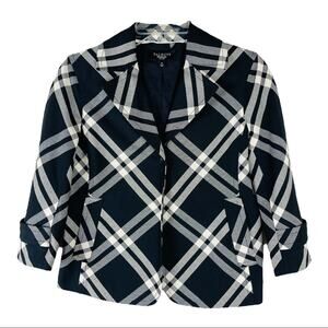 Talbots cream black plaid preppy croppsed academia blazer 2P