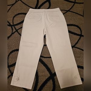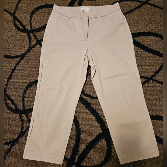 Talbots curvy cropped khakis. Stretchy material 98% cotton 2% spandex. Two functional pockets on the front, two non functional pockets on the back. Buttons on each leg. Size 10. No rips, stains or tears. EUC