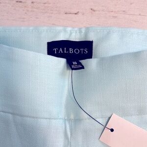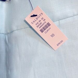Here is a pair of Talbots curvy wide leg linen blend soft aqua green pants slacks 10 NWT