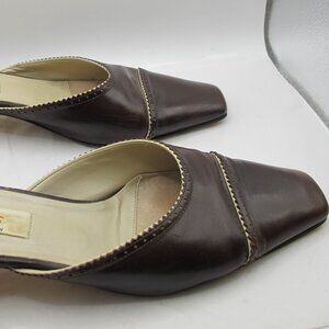 Talbot’s dark brown leather slide with bone stitching detail 8.5N