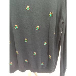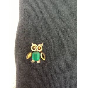 Pre-owned unique Talbots sweater. Color is a dark teal with owls made with beads throughout. sweater is lightweight with crew neck and long sleeves.