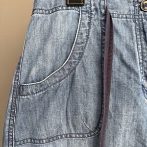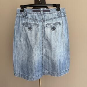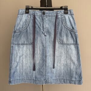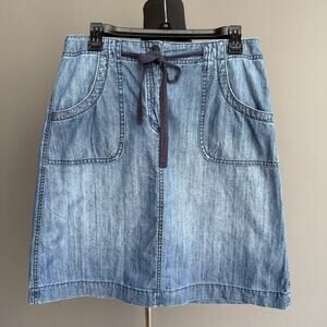 Talbots denim knee length skirt - tie waist - zip fly - cotton - blue - size 8
