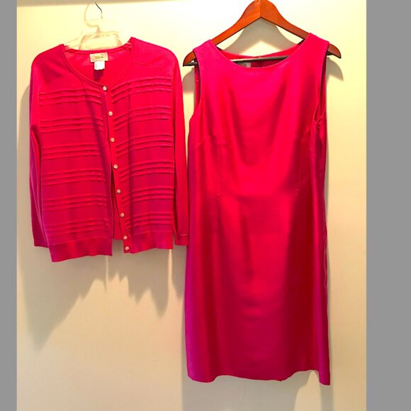 Talbots dress - Fuschia silk sleeveless dress + matching cardigan, size 14