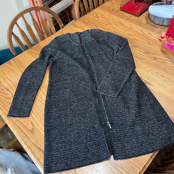 Talbots black and ivory duster jacket, zip front, size XL, worn only a couple of times