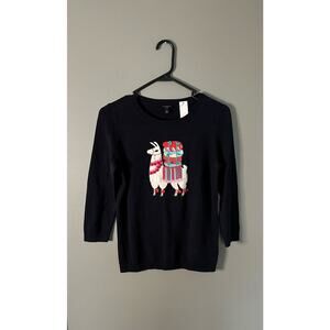 Talbots embellished Pom Pom lama sweater women’s size SP Navy