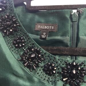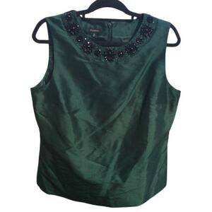 Talbots embellished top womens 12 dark green formal festive beaded shell classic
