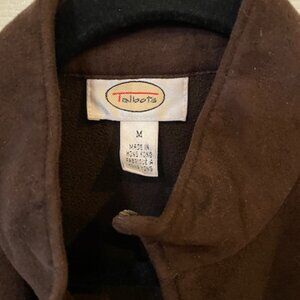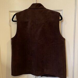 This Talbots faux suede brown vest is size MED and in very good condition. Very well cared for, the vest is machine washable but I have dry cleaned it. A zip-up front and two front snap-close pockets.