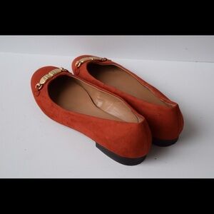 Leather lining. Suede upper. Red Orange color.