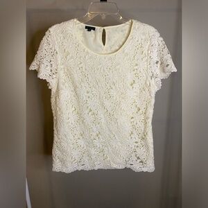 Talbots floral lace cream color short sleeve shirt with side zipper
