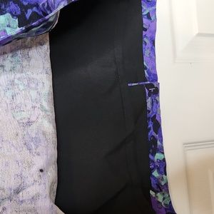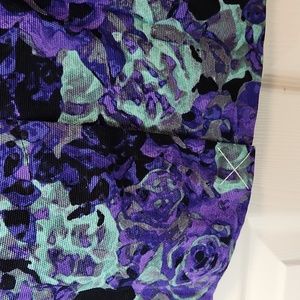 Talbots floral mini pencil skirt, purple and teal, fully lined. NWT. Size 14P. Approximate measurements: 17" waist, 21" hips, 22" length, 7" back zipper, 6" back slit, 20" hem.