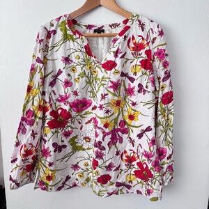 Talbots floral outdoors print blouse top 100% cotton Size Large