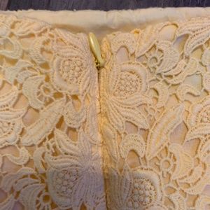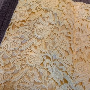 Beautiful lemon yellow skirt- it’s brighter in person. Back zip. Perfect shape . Elegant. Wear it with a white cashmere sweater.