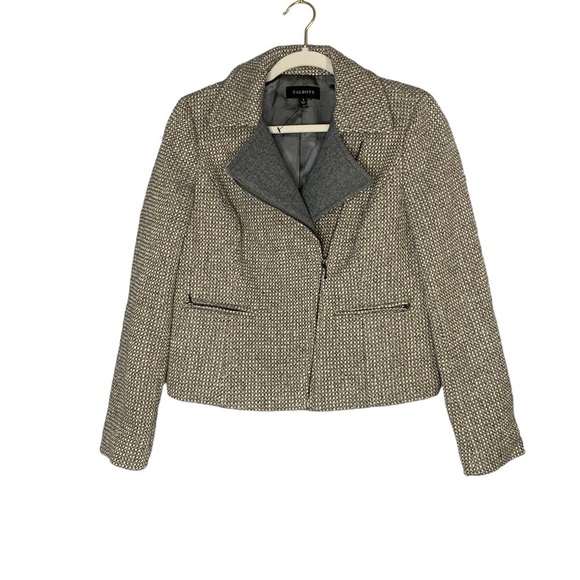 Talbots gray and cream tweed wool blend moto jacket. Size 4