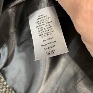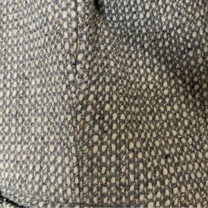 Talbots gray and cream with silver throughout wool blend moto jacket with asymmetrical zipper closure, pockets, and cuffs. Stylish jacket that’s great with jeans or pants! Size 4