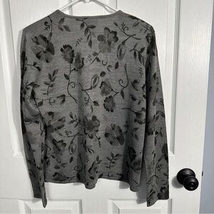Talbots gray floral cardigan, buttons, size small, acrylic/wool, spring, layer