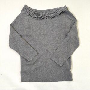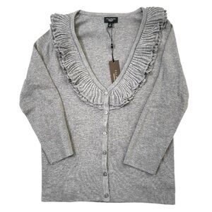 Talbots v neck ruffle accent neckline gray button close cardigan small petite new