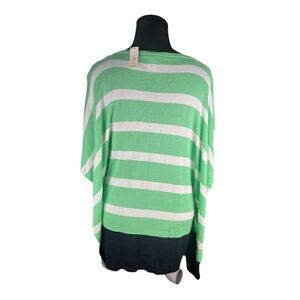 Talbots green and white striped waterfall poncho sweater L/XL New
