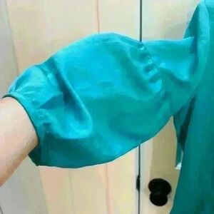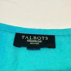Talbots green blouse size LP, with puffy sleeves, 100% polyester.