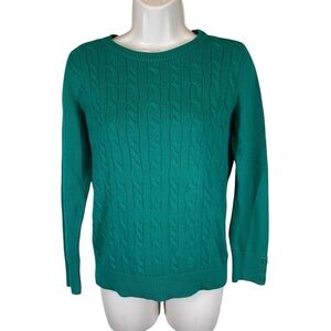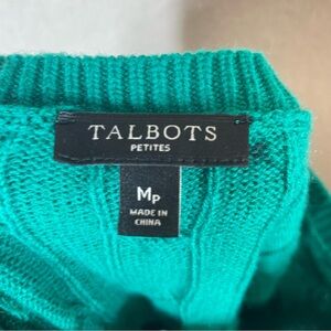 Talbots green cable knit sweater women’s medium petite lambswool blend