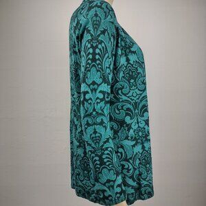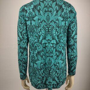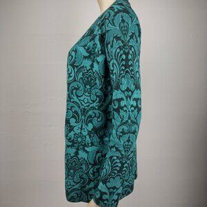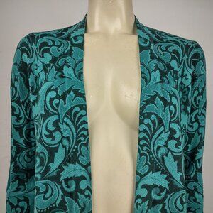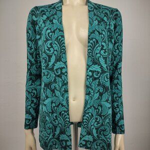Talbots green damask 100% Merino Wool open front cardigan sweater ladies Small