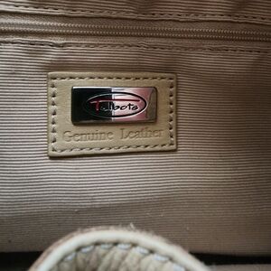 Talbots Genuine Leather Handbag. 2 small side pockets on each side and zipper pocket on the inside. color Beige. no tear, no discoloration.