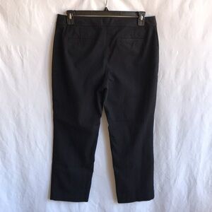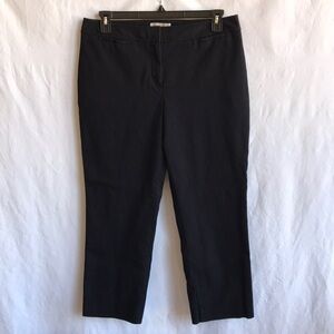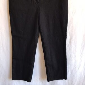 Talbots black straight leg pants, size 14 petite. Good preowned condition. All pockets stitched closed and are therefore not operational, but this provides a more flattering look.