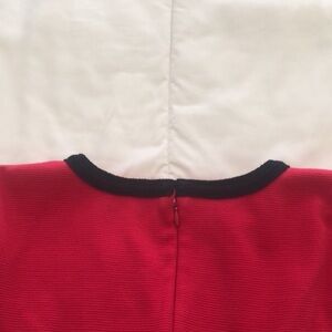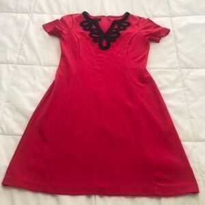 Talbots hot pink ribbed sheath dress with navy embroidered neckline size small
