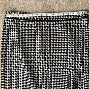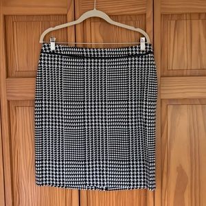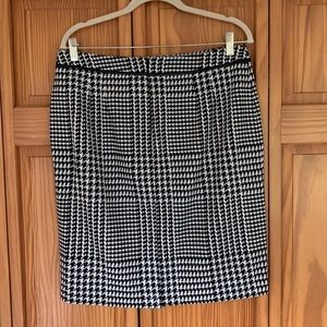 NWOT perfect houndstooth pencil skirt. With the faux leather trim at waist and the houndstooth pattern laid out in a subtle plaid this cotton skirt feels like a dream and pairs so nicely with boots or shoes. Dressed up or down, this skirt rocks.