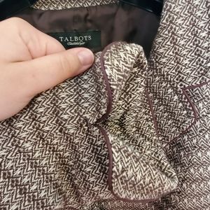 Talbots jacket with a retro 1940s cut. There are fantastic details such as the large faux tortoise buttons, the turned over cuffs, and back pleats.