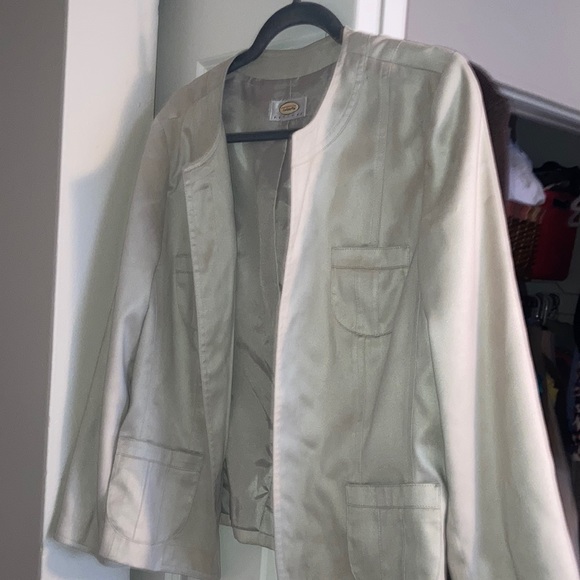 Like new. Boxier style than I prefer so my mid purchase is your gain! Really nice top stitching detail on this faux suede jacket.