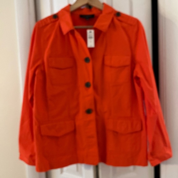 Talbots lightweight jacket. Button front with pockets. 100% cotton. Color is a deep tiger lily