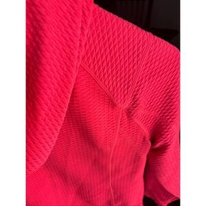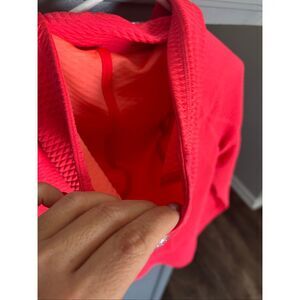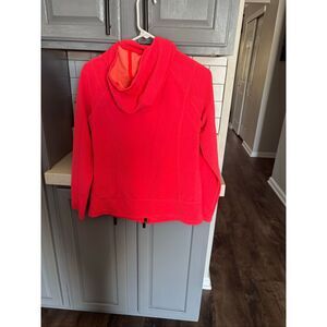 Talbots women’s sports jacket, size S, in a bright paradise pink with hints of tangerine orange… has a hood, sturdy, zipper, and thumb holes