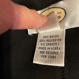 Super soft material, Talbots, Size L, 70% Rayon, 25% polyester, 5% Spandex, 3 hidden buttons down the front of jacket, very good shape.
