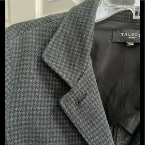 Talbots houndstooth black and grey knit blazer. Practical and comfortable for work as well as versatile for a fun jacket with your favorite leggings or jeans.