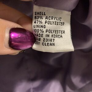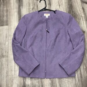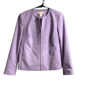 This lavender talabat petite is a size 4 it has the little zipper going down. It features side pockets on this beautiful lavender color. This feels super soft, very well-made long sleeve