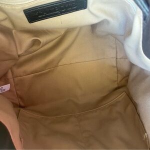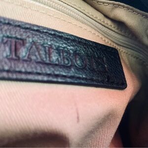 Rare Talbots larger leather bucket bag features a sophisticated black and cream chain pattern. The elegant design is complemented by high-quality materials and a chic finish. Tassel and magnetic closure. Call outs a couple ink stains inside, Missing original handles, I have provided a new adjustable shoulder to cross body black strap and bonus a gold chain link crossbody! No hand drop, so this is for the shoulder or crossbody lover unless you add your own handles. Beautifully made gently loved,