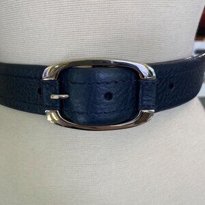 Talbots leather belt size large navy blue office career 1.25"