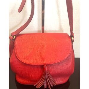 Talbots leather red vintage pebble grain Leather Shoulder/Crossbody Bag front tassel. Stylish red leather crossbody bag with a sleek design. Perfect for everyday use. Inside lined one zipper pocket multifunctional pockets front flap snap closure. Beautiful Preowned Condition!