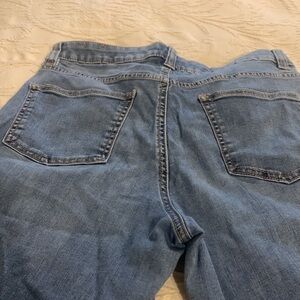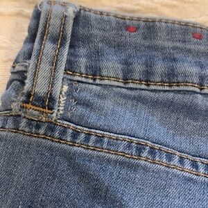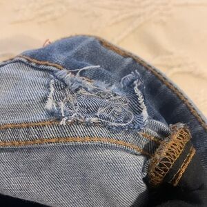 10” rise 16” waist 28” inseam soft wear spandex cotton blend repair at belt loop light wash very comfy no stains great condition other than loop repair