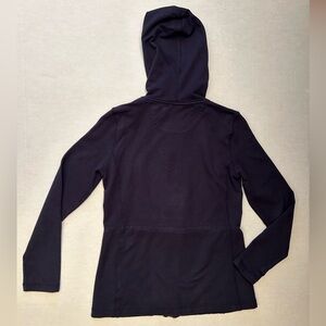 Talbots hooded zip light weight jacket in 56% pima cotton,40% modal & 4%spandex. Front zip pockets & adj bungee drawstring waist. Pre owned great condition.