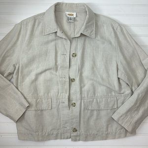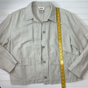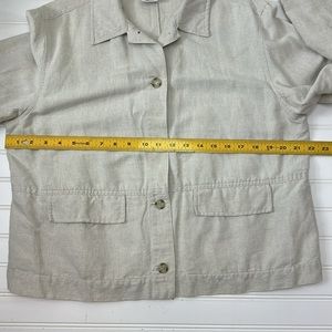 Great neutral color with no holes or stains. Lightweight with collar and button front. See photos for approximate measurements.