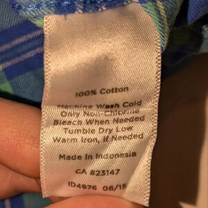 Talbot's long sleeve button down blue/green plaid shirt, size M