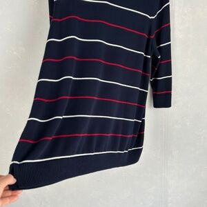Talbots long sweater plus size 2X double v tie back navy stripe 100% Pima cotton 3/4 sleeve