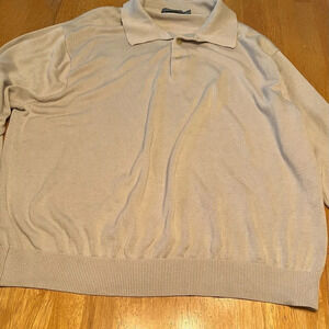 Talbots menswear silk blend top, size XXL. This long sleeved top is 75% silk and 25% cotton. It’s in very good condition with no holes, rips or stains. It still has the extra button attached.