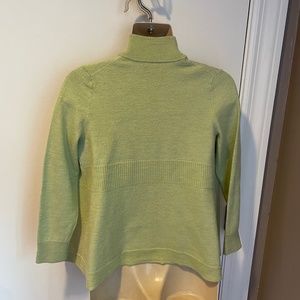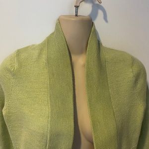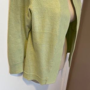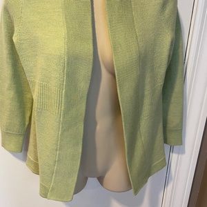 Talbots Merino wool open cardigan. Size LP. This pretty sweater has cute details like ribbed hem/sleeves, and ribbed around the waist for added shape. Pure merino wool. 3/4 length sleeve. Sweater is in wonderful condition -- there may be some slight pilling. Approximate measurements: armpit to armpit (measured on back since open in front) = 16" and length = 22"