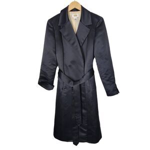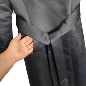Talbots midi long black jacket tie beaded embroidered belt size 10
