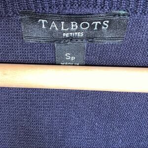 Talbots midnight blue cotton blend crocheted sleeve 3/4 sleeve sweater size SP
