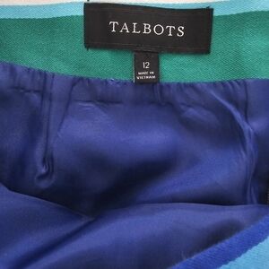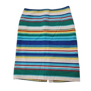 Like new, beautiful summer colors, white, blue and green stripes, midi, zips up back